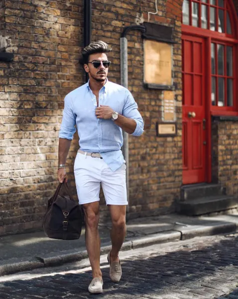 Polo shirts are a fantastic choice for evening outings. They strike the right balance between casual and smart, making them ideal for dinners or even a night out. When picking a polo, make sure to create a contrast between the top and bottom of your outfit. For instance, if you opt for a white polo, pair it with darker shorts or chinos. This contrast not only adds a stylish touch but also ensures you stand out for all the right reasons. If you’re planning to show off your tan, a white polo is perfect, but only after you’ve soaked up some sun!