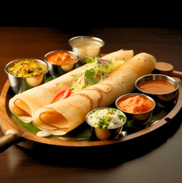 - Dosa: Crisp crepes made from fermented rice and lentils, often filled with spiced potatoes.