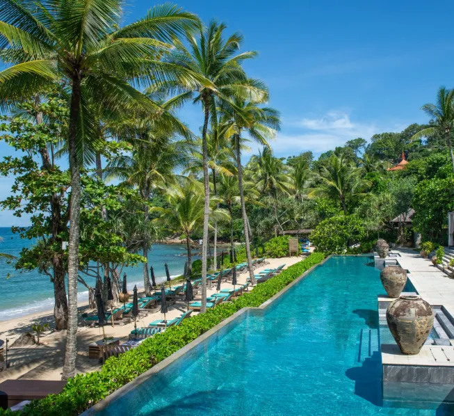 Known for its exclusivity and luxury, Trisara is one of the most beautiful beachfront resorts in Phuket. Located 12 km from the airport, the resort offers private villas and suites, each with stunning ocean views and a private pool. Guests can relax on a private beach, while families can take advantage of the mini club for children. Trisara is perfect for those looking for a luxurious and serene getaway.