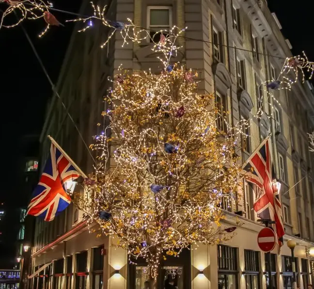 - The Ritz London Courtyard: Capture the magic of the holidays with a photo outside this iconic hotel, beautifully decorated with Christmas lights and a large tree.